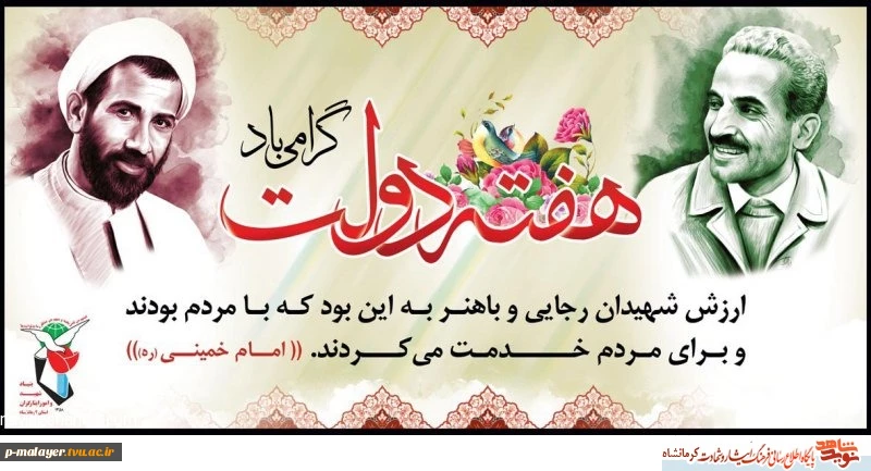 امتیاز دهید : هفته دولت و یاد و خاطره شهیدان رجایی و باهنر گرامی باد 2 یکشنبه 3 شهریور 1398 ساعت 7:30